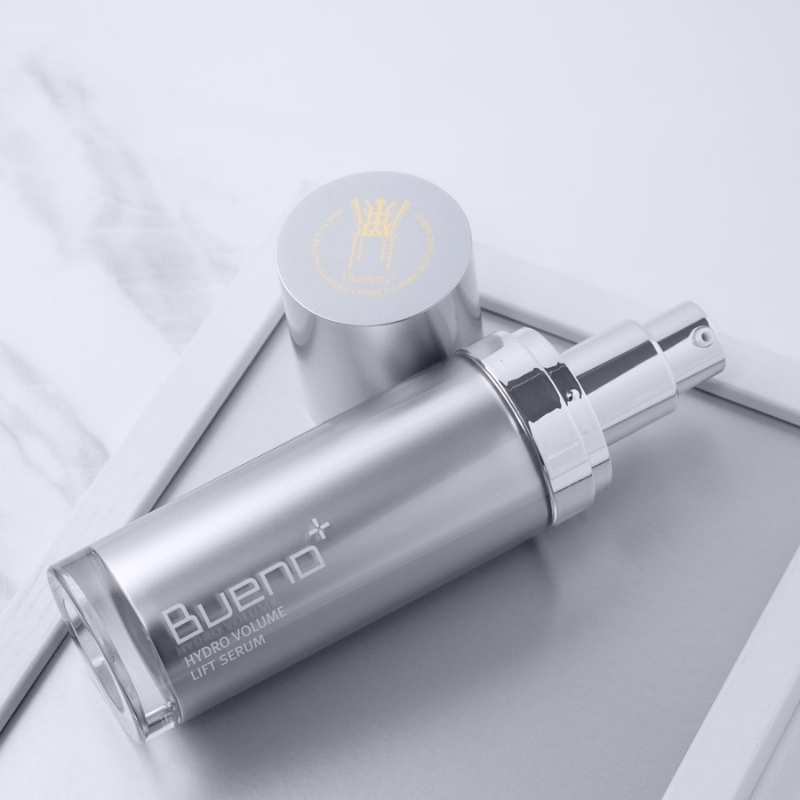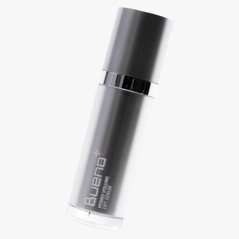 - After cleansing and toning, apply 1–2 pumps of Bueno Hydro Volume Lift Serum to face and neck.