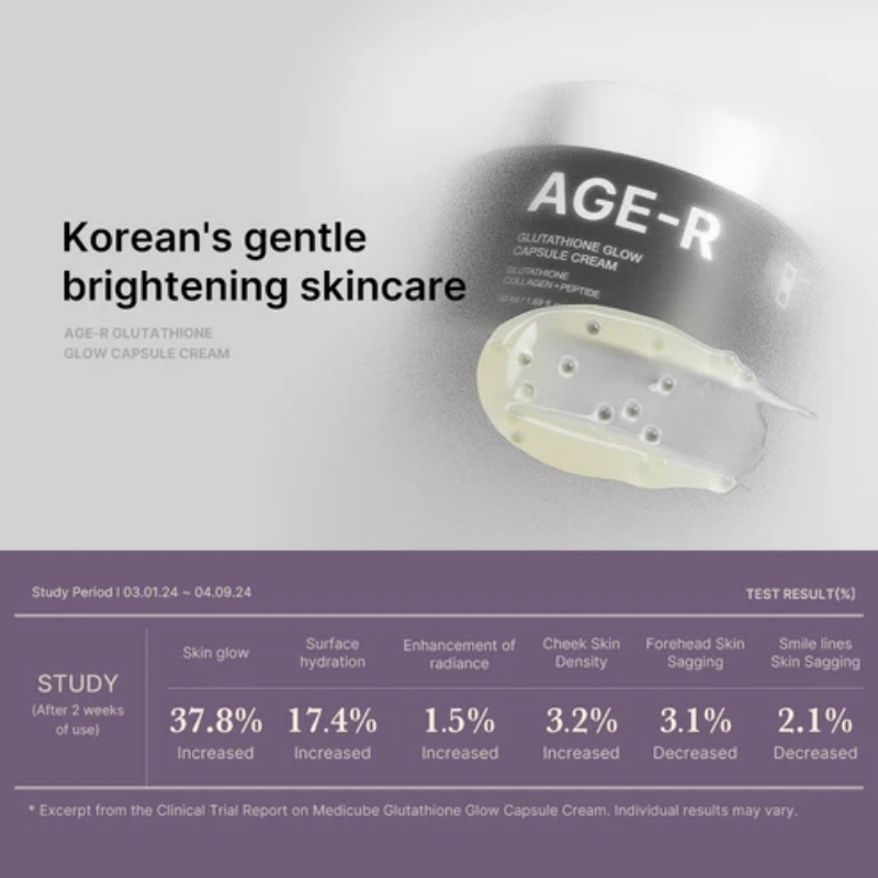 *Excerpt from the Clinical Trial Report on Medicube Glutathione Glow Capsule Cream. Individual results may vary.