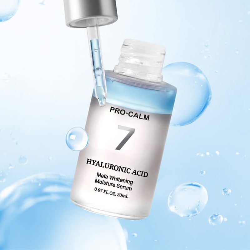PRO-CALM Mela Whitening Moisture Serum 20ml is a lightweight yet deeply hydrating serum designed to replenish dry skin while helping the complexion look clearer, brighter, and more even-toned. Powered by seven types of hyaluronic acid, niacinamide, ferments, and antioxidant-rich botanical extracts, it delivers layered moisture and glow without heaviness—an ideal daily serum in any Korean cosmetics Cyprus routine.