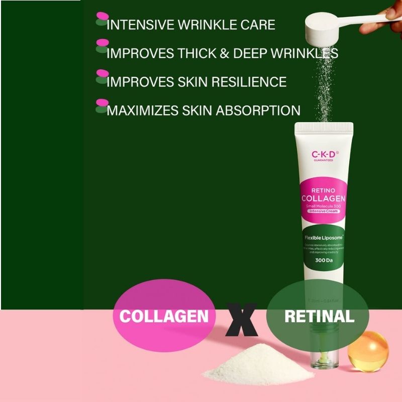 Experience the rejuvenating power of CKD RETINO Retinal and Collagen Molecule 300 Anti-Wrinkle Firming Face Cream. This luxurious formula is designed to tackle the signs of aging by improving skin elasticity, firming sagging areas, and reducing wrinkles. Enriched with low-molecular-weight collagen and stabilized third-generation retinal, it boosts collagen production for a youthful and lifted appearance.
