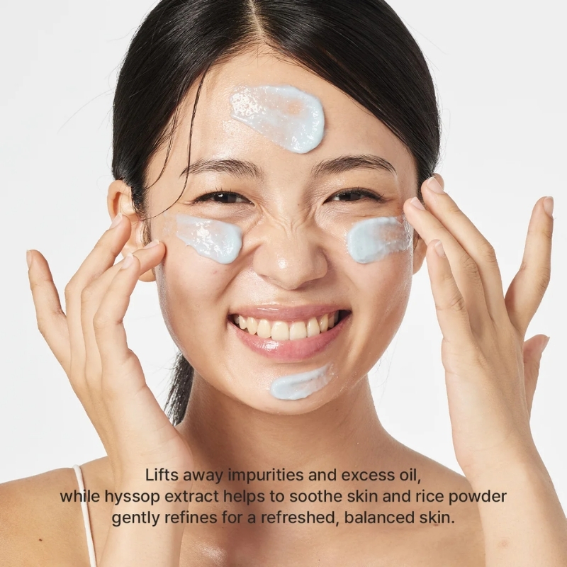 - Deep pore cleanse & oil control: Kaolin clay, rice powder and mild surfactants lift excess sebum, SPF and impurities without stripping.