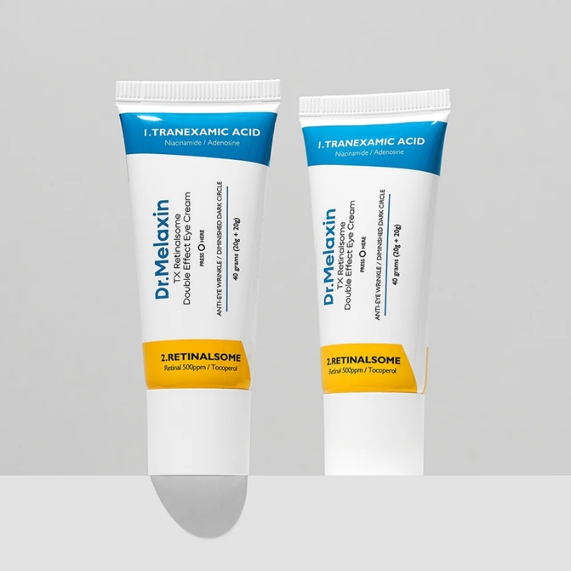 Dr.Melaxin TX Retinalsome Double Effect Eyecream is a targeted brightening and anti-wrinkle eye cream that combines Tranexamic Acid, Retinalsome and Niacinamide to visibly improve dark circles and fine lines. This advanced Korean cosmetics formula is ideal for those seeking the best eyecream for wrinkles in a KBEAUTY Cyprus routine, delivering a smoother, firmer and more radiant under-eye area over time.
