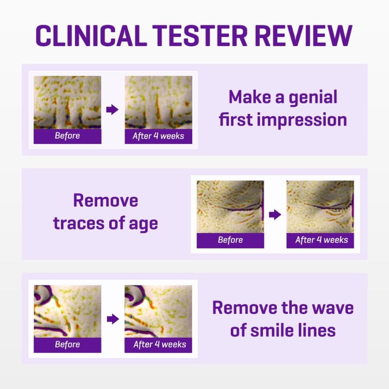 Skin Concerns: Fine lines • Crow’s feet • Dark circles • Uneven texture • Early loss of elasticity • Dehydration