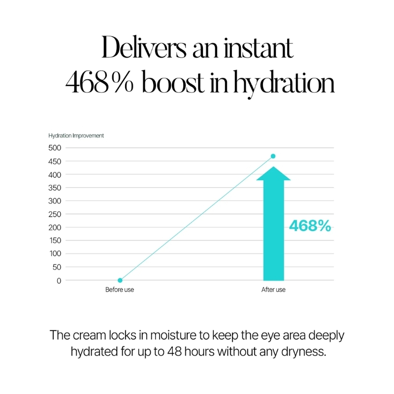 - Panthenol (B5): strengthens the moisture barrier and soothes delicate under-eye skin.