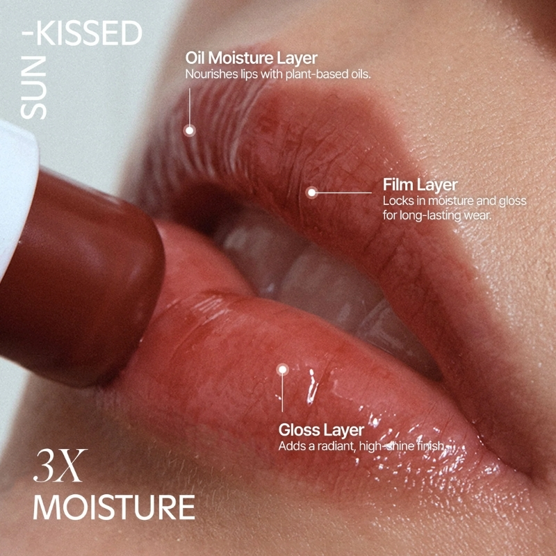- 3-layer glow system: oil moisturizes, gloss reflects light, skin layer smooths the look of lip lines.