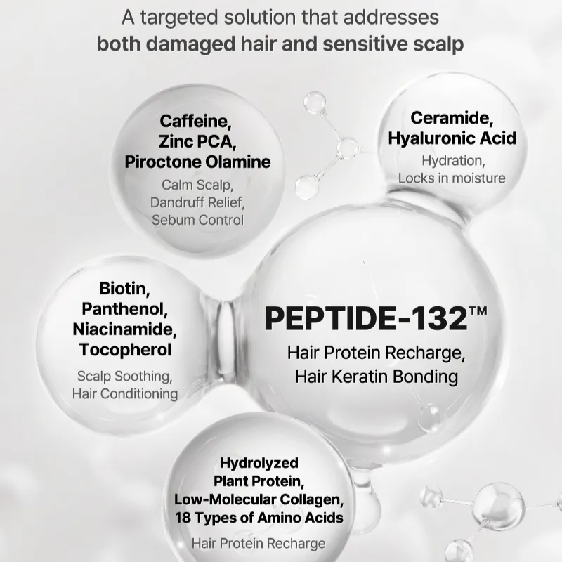 - PEPTIDE-132™ (Tripeptide-132 HCl): targeted bond-care peptide to support keratin structure.