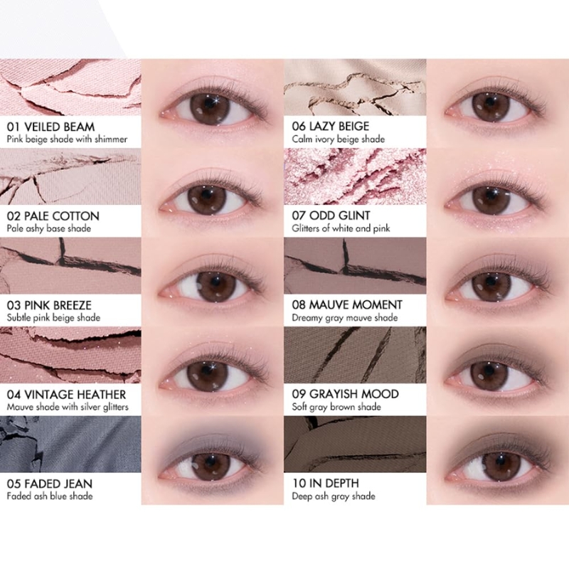 romnd Better Than Palette #13 Odd Breeze Garden paints spring eyes in moody, ashy mauves. Ten harmonised mattes, shimmers and glitters layer weightlessly to build everything from soft‑focus washes to full moon‑lit drama, all in one chic clear‑case compact.