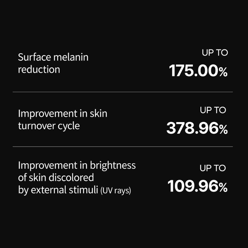 - Melazero V2 – clinically proven encapsulated brightener that degrades existing melanin and blocks new pigment.