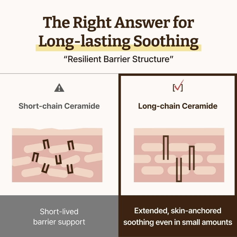 A: It contains a patented long-chain, skin-identical ceramide structure (KR10-1816019) designed to fit the skin better and provide longer-lasting barrier support with a lightweight, non-greasy feel.