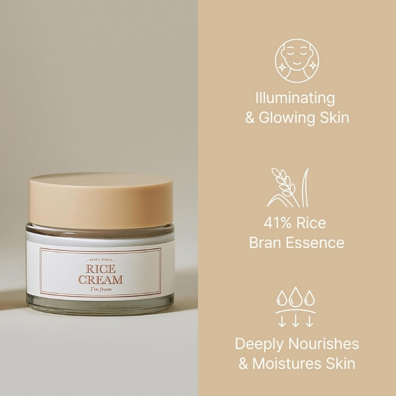 I’m from Rice Cream is a silky vegan moisturizer that deeply hydrates, helps balance excess sebum, and strengthens the skin barrier for a healthier, more radiant look. Enriched with rice bran water, rice bran oil, ceramide, and soothing hydrators, it melts smoothly into the skin and leaves a soft, nourished finish without feeling greasy—an easy favorite in any Korean cosmetics Cyprus routine.