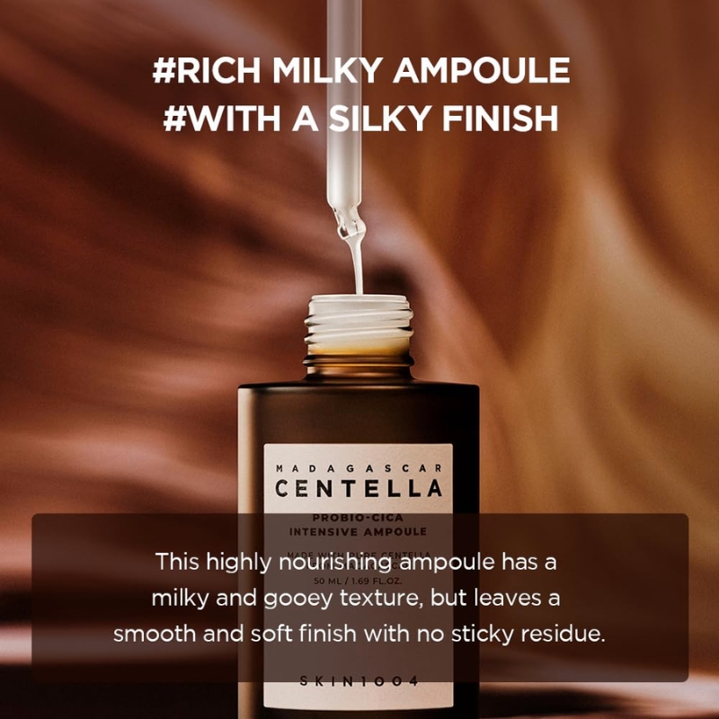 A: Use it after toner/essence and before cream. A typical order is: cleanser → toner → Skin1004 Madagascar Centella Probio-cica Intensive Ampoule → moisturizer → sunscreen (AM). It pairs well with other Skin1004 Cyprus Centella products for a fully soothing routine.