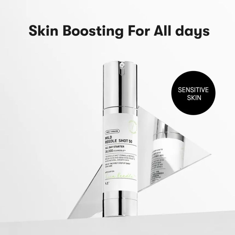 Transform your daily skincare regimen with the VT COSMETICS CICA Reedle Shot 50, a gentle microneedling ampoule designed to smooth texture, tighten pores, and boost the absorption of subsequent skincare. Formulated with VT’s patented “Cicahyalon™” complex—featuring Centella Asiatica Extract, Triple Hyaluronic Acid, and Green Propolis—it soothes irritation, hydrates deeply, and supports a brighter, more elastic complexion. Leveraging “Cica Reedle™” technology, the ampoule’s micro-sized spicules help deliver active ingredients further into the skin for improved results, all while remaining safe for sensitive or blemish-prone types.