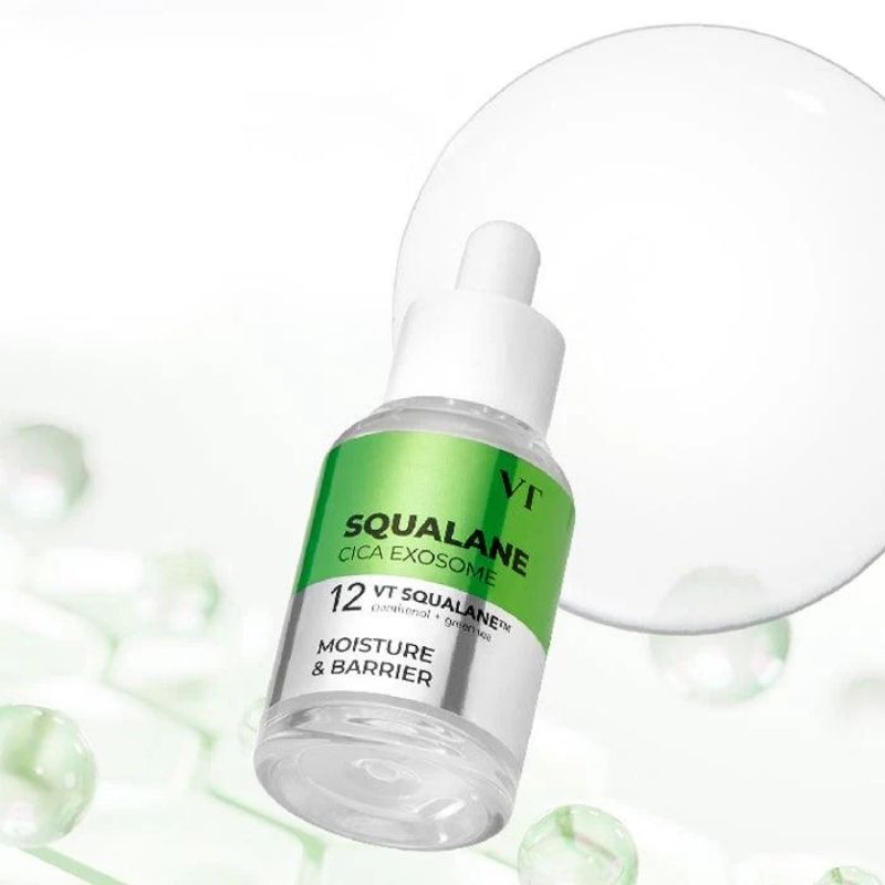 VT Squalane S4 Moisture Ampoule is a plush yet fast-absorbing hydrator that floods skin with plant-derived squalane, barrier-repairing ceramides and VT’s soothing Cica Exosome Solution. The result? Long-lasting moisture, balanced oil-water levels and a calm, supple glow—without a hint of greasiness.
