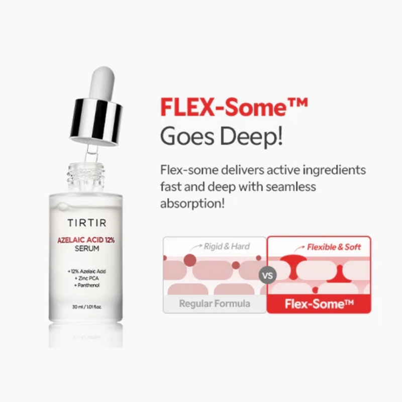 TirTir Azelaic Acid 12% Serum is a targeted treatment from Korean cosmetics brand TirTir designed to calm redness, fight breakouts and refine uneven texture. Powered by 12% azelaic acid with Zinc PCA and panthenol, it helps clear acne-prone skin while keeping the moisture barrier comfortable and hydrated.