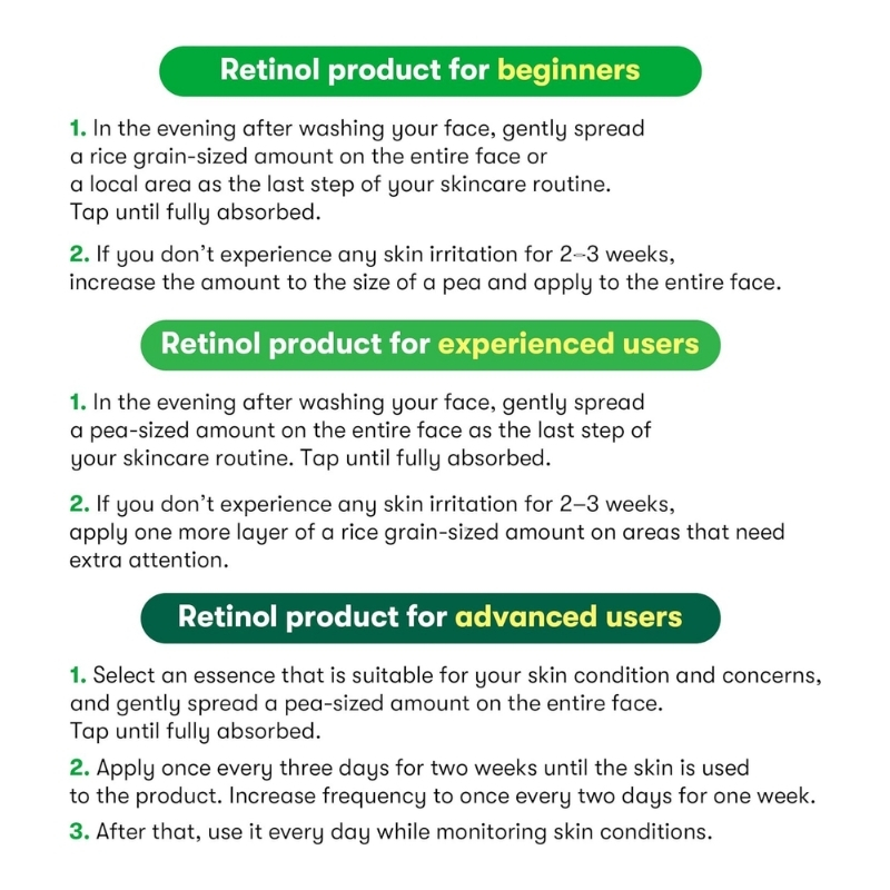 - Begin 2‑3 nights per week; build to nightly as tolerance allows. Always follow with SPF in the morning.