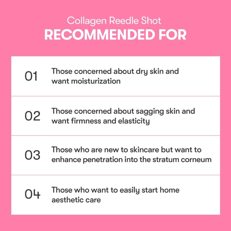 - Deep collagen delivery: CICA REEDLE™ microneedles create micro-pathways so 500 Da collagen penetrates the stratum corneum for visible bounce.