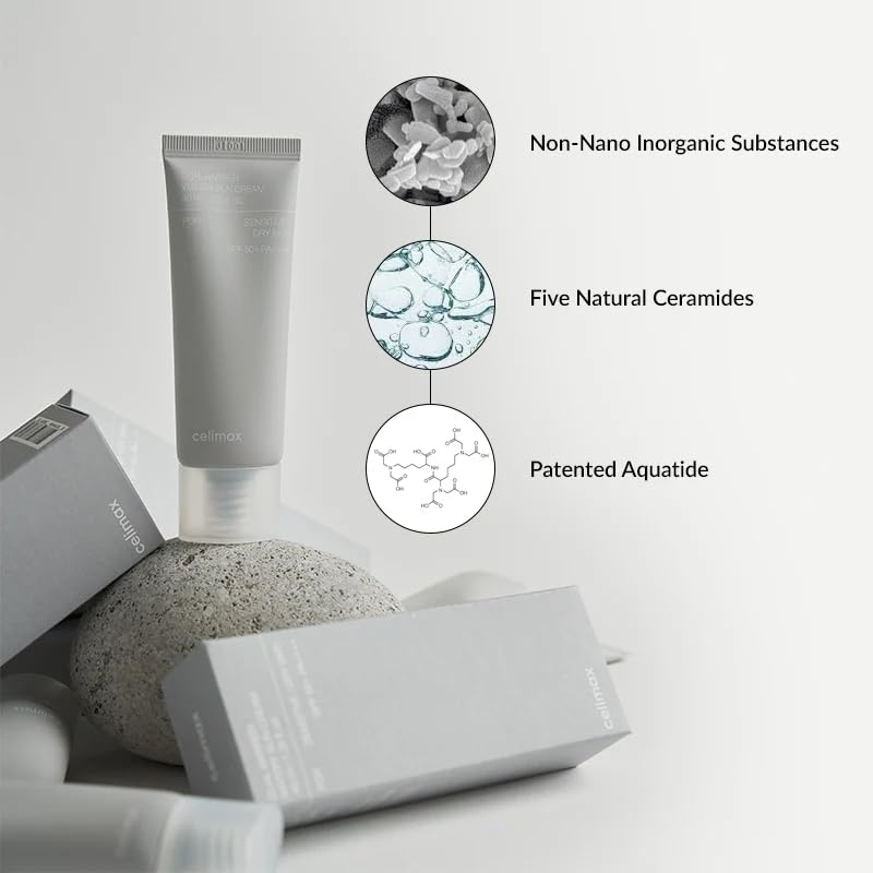 celimax Dual Barrier Watery Sun Cream is a moisturizing mineral sunscreen that protects sensitive skin with broad-spectrum SPF 50+ PA++++ while helping keep the skin barrier soft, calm, and hydrated. A great daily sunscreen choice for anyone looking for Korean Cosmetics Cyprus, this skin-friendly formula from Celimax blends non-nano zinc oxide with five ceramides and Aquatide for comfortable UV protection without a heavy feel.